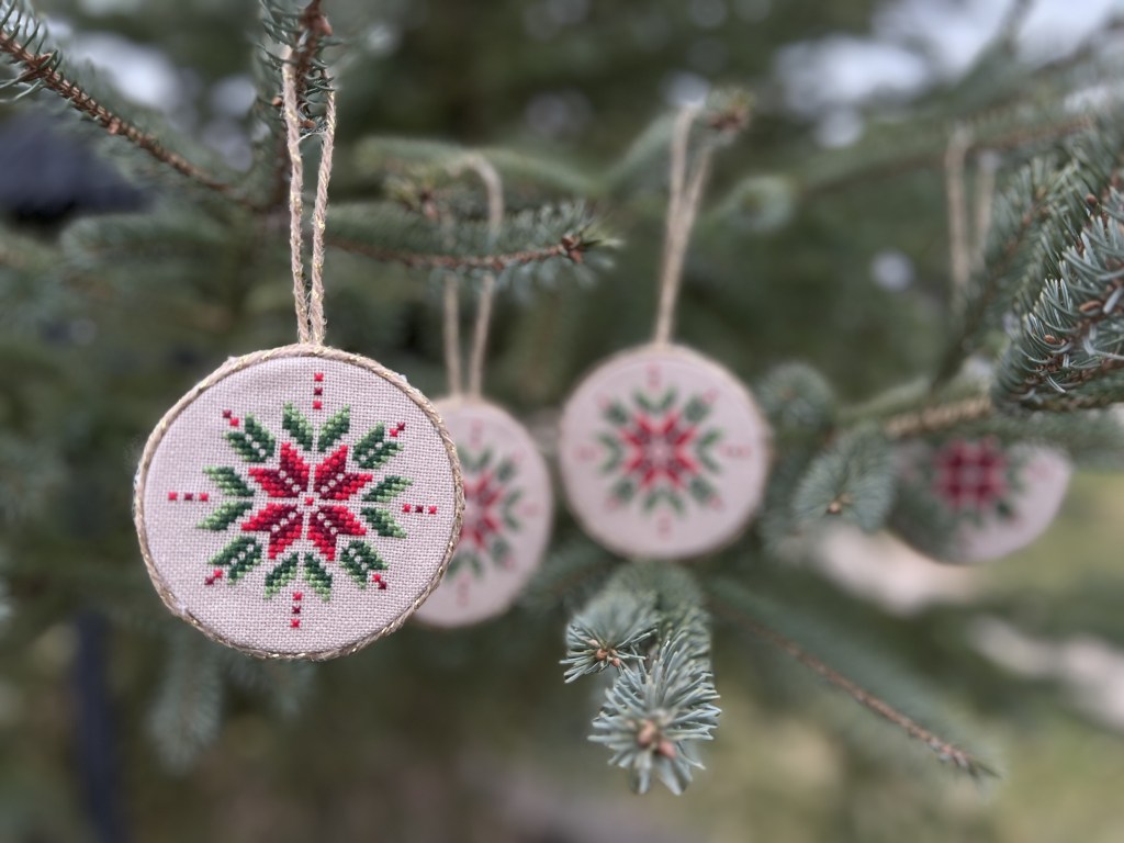 I have felt the push to challenge myself on the designing side of cross stitch lately and it has been a lot of fun. I’ve been sketching on grid paper, just to see what I could come up with, doing lots of quilty stars and snowflakes. In one of my sketching sessions this barn emerged and I was so excited that I dropped all of my other projects to stitch it up!